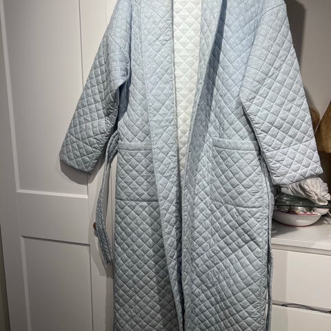 Blød badekåbe i 100 % bomuld med lyserød broderet blomst. Aldrig brugt. Vasket.