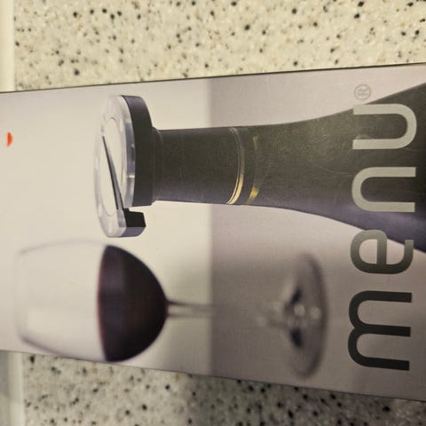 Menu Selection vinsæt, 2 dele ( de to i gennemsigtig / hvid plast) skænkeprop med iltning og vinprop hvor O2 kan pumpes ud af flasken, nypris 349 kr. sælges for 100 kr
