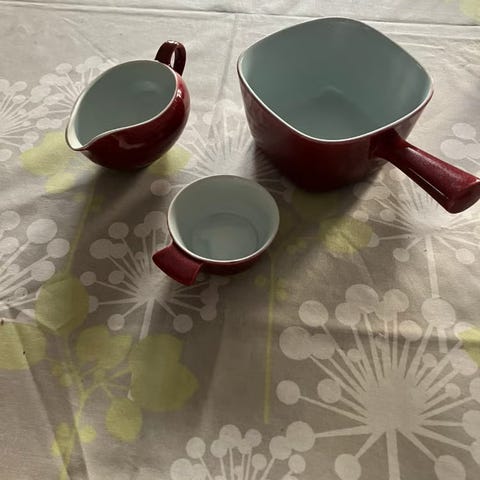 Flot rød farve, ingen skader men alderen viser sig dog indvendig i skålen (misfarvning) som det ses på de sidste fotos..