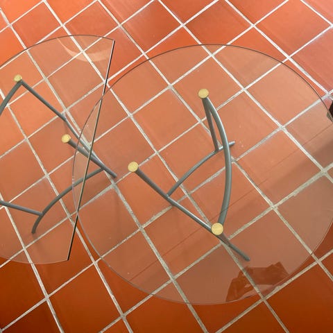 Tre elegante sofaborde i glas og stål fra det tyske designfirma Rolf Benz. Glaspladerne og de kraftige stålben er uden ridser og skrammer.