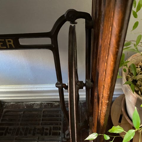 OPHØRSUDSALG i Interiørstalden ‼️ Smukt lille bord i ædeltræ med intakt Singer Symaskine indenunder den flotte træbeskyttelse.