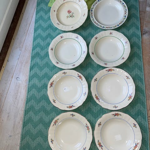 8 stk. kagetallerkener. D: 18 cm. Pæne og velholdte. Ingen skår eller ridser