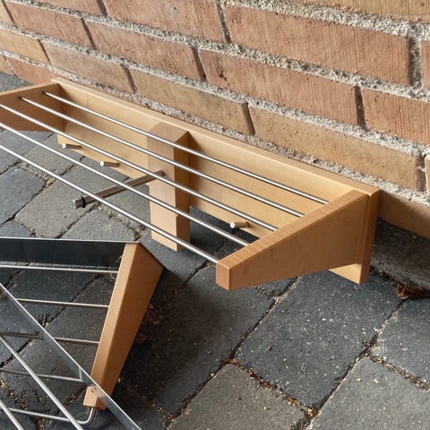 Knagerække er 75 cm lang og hylde 26,5 cm dyb.