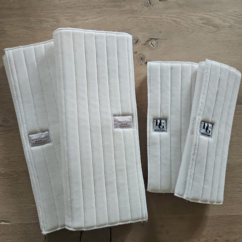 4 Bandageovertræk str. XL fra HorseGuard sælges. Der er elastik i top og bund, og kan derfor tilpasses hestens ben. Brugt 2-3 gange, men fremstår som helt nye (og vasket).