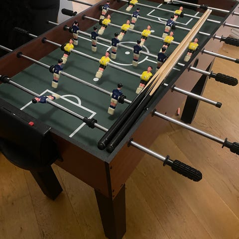 Nyere og næste ikke brugt Smoby 4 i 1 boldspil. Bordfodbold med 6 korkbolde, Billard / Poolbord, pool trekant, 2 stk billard køer, kridt og baller, “air” hockey, bordtennis med bat og bolde (net mangler)
