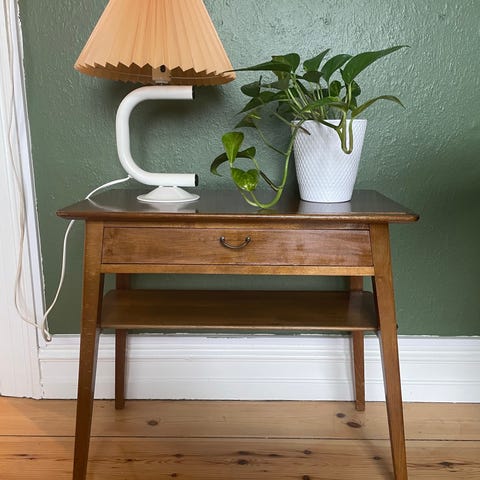 Lille natbord i teak og eg fra 1960erne.