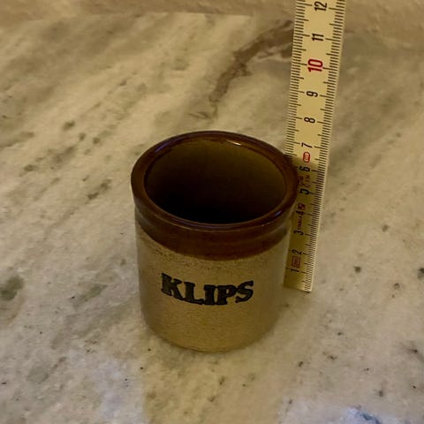Osteklokke, fad dia 20 cm højde med klokken ca 16 cm. Perfekt stand, der står " Bendtsen Fåborg" og "Kramboden Odense" i bund.