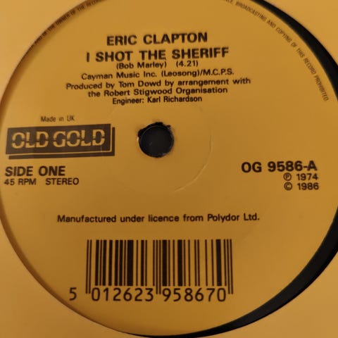 Eric Clapton The Best of Eric Clapton vinylplade med inkluderede sange som "Layla", "I Shot the Sheriff" og "Cocaine". Pladen indeholder et udvalg af Eric Claptons mest kendte numre.