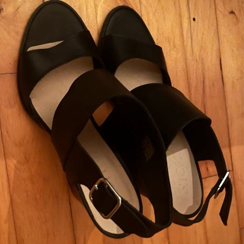 Flotte sorte læder sandaler med høj tyk hæl, str 41 ( lille i str )