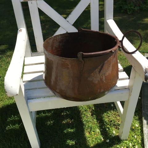 Meget fin og autentisk Kobber-kasserolle med låg (lidt bulet i kanten) - sælges, da kobber ikke er til induktion