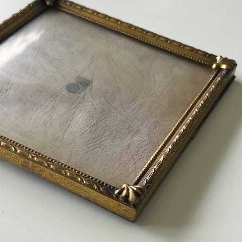 Søgeord: vintage ramme, metalramme, guldfarvet billedramme, klassisk dekoration, retro indretning, minimalistisk design, elegant billedramme