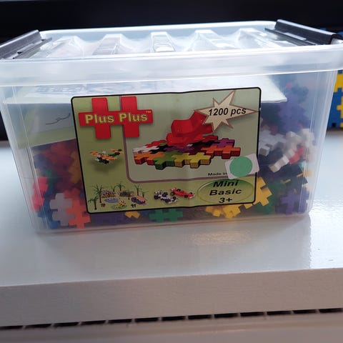 Plus Plus Plus Plus Mini byggesæt med 14 forskellige farver. Sættet indeholder 41 hvide, 25 lyserøde, 16 grønne, 45 blå, 19 gule og 4 orange byggeklodser. Fremstillet i Danmark. Velegnet til kreativ leg og konstruktion.