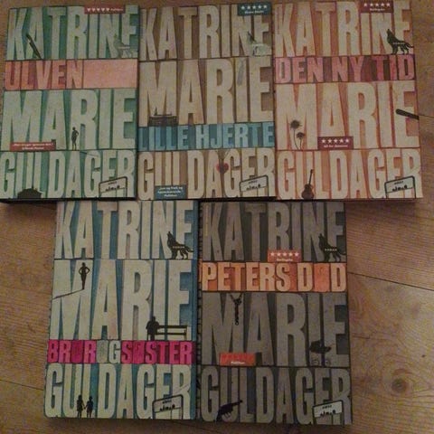Katrine Marie Guldager. Politikens Forlag 2015. Hardbacks med smudsomslag. Pæn stand. De seks bind i serien Køge-Krøniken. Ulven + Lille Hjerte + Den ny tid + Peters død + Bror og søster + Ilden. Sælges kun samlet (L-??-2500)