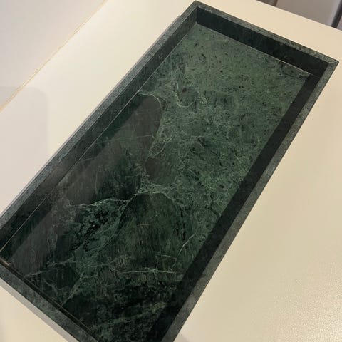 "Jilly marble tray" i brun fra Cozy Living Copenhagen sælges. Den har stået til pynt på køkkenbordet med krydderurter, olier mv.