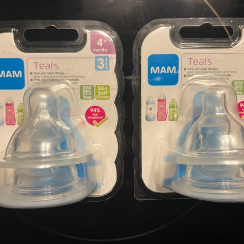 Bedste Mam sutter med ekstra god luft i og stort set nye (og kogte) sutter, der lyser op:-)så nemt at finde:-)