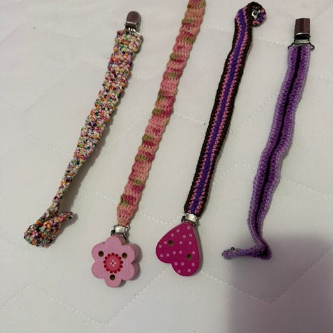 5 søde suttesnore (en i hjemmestrik med Mickey sut) m gratis fragt
