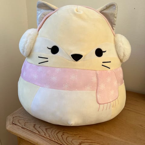 Tøjdyret måler 19 cm og den søde Squishmallows plysbamse er lige til tage med i sofa eller bruge som sovebamse:-) Anbefalet fra 0 år og frem