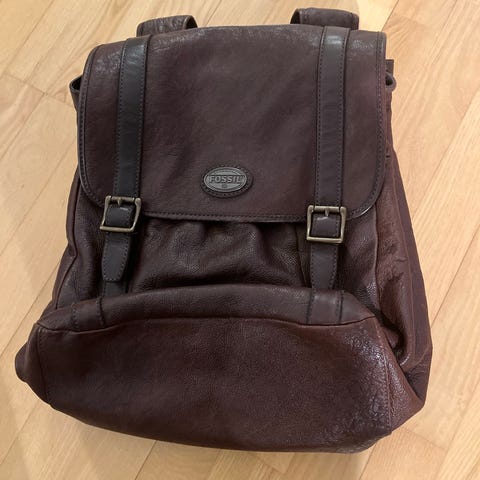 Meget robust brun/bordo leather rygsæk fra Ecco.