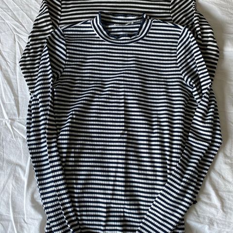 Stribet bluse med flæse effekt for neden
