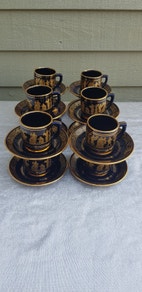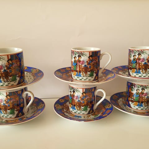 Porcelæn, Espressokopper/ Tyrkiske kaffekopper m/underkopper, "NEOFITU" Keramik, Håndlavet i Grækenland, og dekoreret med 24 karat guld.
