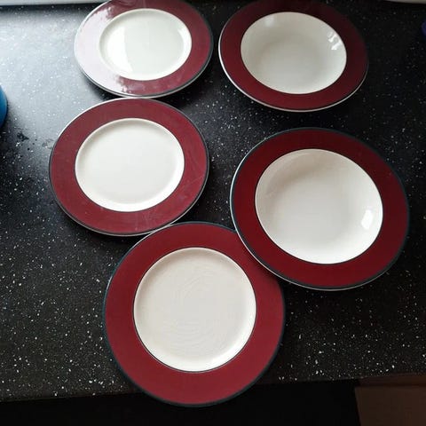 De 7 tallerkener er i perfekt stand.
