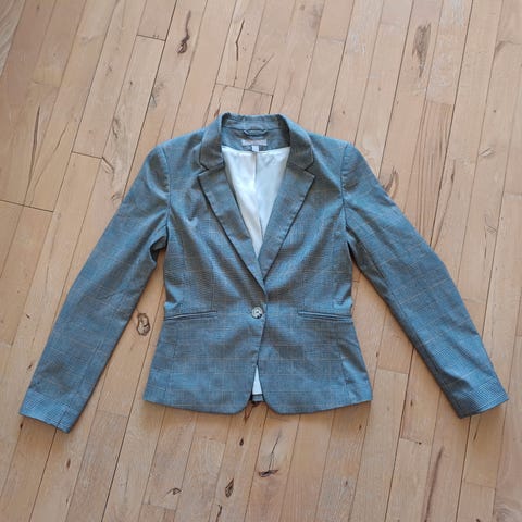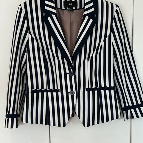 Ubrugt ternet blazer fra H&M i str. L, dobbeltradet, ikke ryger hjem, brystmål 2 x 65 cm, længde 74 cm, aldrig brugt