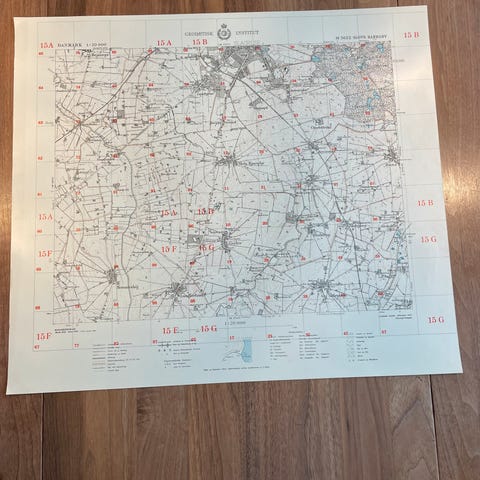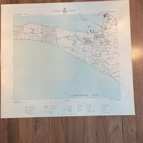 Vægkort fra 1950: Ledreborg og omegn (perfekt stand)