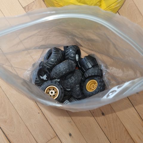 2,3kg LEGO hjul i forskellige størrelser og farver.