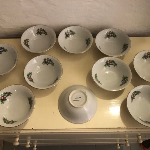 Engelske souffleskåle og cocotter i hvidt stentøj med de klassiske riller. 6 stk.