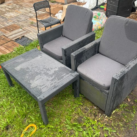 Jeg har 2 stole, de er gode at sidde i, gode til havestue eller sommerhus ..200 kr pr stk