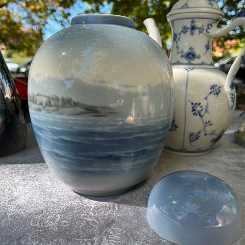 Hel perfekt lågkrukke - Royal Copenhagen 10/1791. Højde 31 cm. Bredde 22 cm. Står lige så smukt i dag, som da den blev fremstillet i 1947. Afhentning i Valby eller evt. leveret på Sjælland efter nærmere aftale.