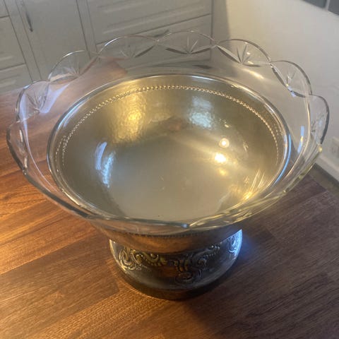 Fin lille skål i pletsølv . Se stempler. Den er lavet af Carl M Cohr, som blev meget populær for sin legering af Atla sølv. Antagelig fra 1930'erne og som sådan næsten antik. Det er den fine skønvirkestil, som var meget populær i 30'erne. Måske til smykker opbevaring. Højde 7 cm diameter 11 cm.