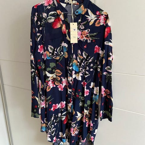MØRK BLÅ KJOLE FRA VRS STR SMALL NYT