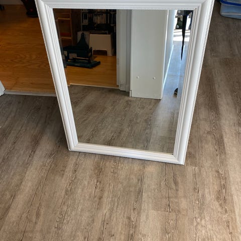 Kvadratisk spejl med hvid ramme i 80x80 cm.