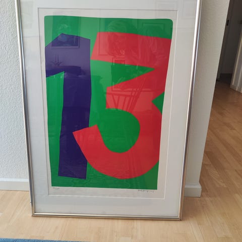 Litografi, H. Arthur Bertrand, motiv: Abstrakt, b: 70 h: 54, Stort litografi i flot passepartout og guldramme. Lysmål 70x54. Ramme 88x74