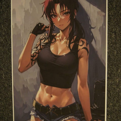 På Billede ser man: Revy, som er en lejesoldat, hvor hun affyrer en gun
