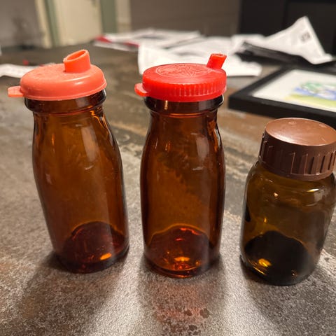 Små glas med forskelligt indhold fra 50’ernes biologilokale.
