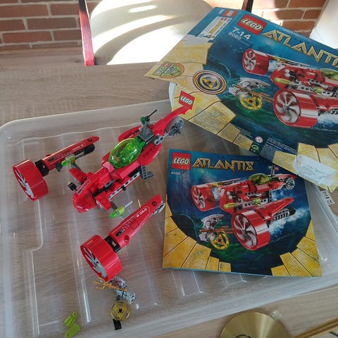 Mangler en sort arm på blæksprutten del (4505942) og 2 harpuner del (4287672) samt 2 elastikker erstattet med almindelige elastikker.