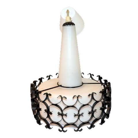 stor og skøn hvid glasskærm fra Holmegaard med plisseret blonde top