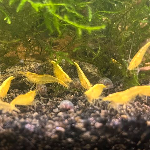 Neocaridina rejer i forskellige farver, som ses på billedet. Det er “blandingsrejer” som kommer fra røde, blå og gule rejer der har krydset. Nogle er grønlige, andre mere orange og nogle mere røde eller brune/ grålige. Prisen er 10 kr. stykket.