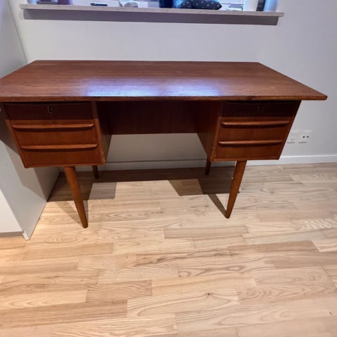 Skrivebord, b: 129 d: 64 h: 129, Vintage skrivebord i fineret og massivt teaktræ, formentlig danskproduceret fra 1950`erne - 1960`erne.