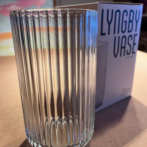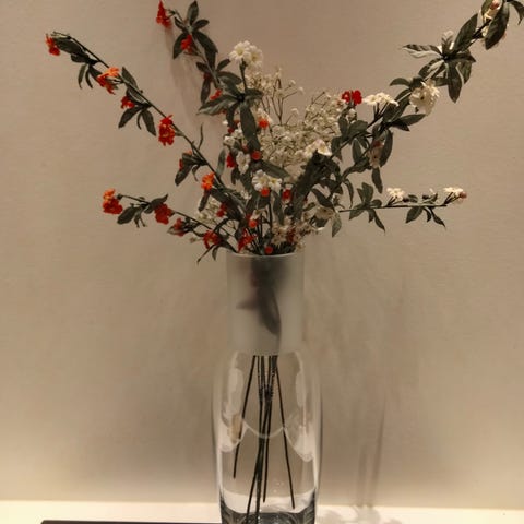 Den har aldrig været brugt med vand, så ingen kalk pletter, der har kun været tørrede blomster i den.