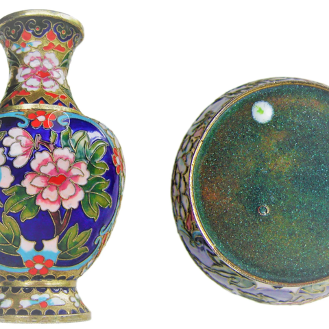 Kinesisk Cloisonné Vase. Sæt med 2 vaser. Blomstermotiv Farverig