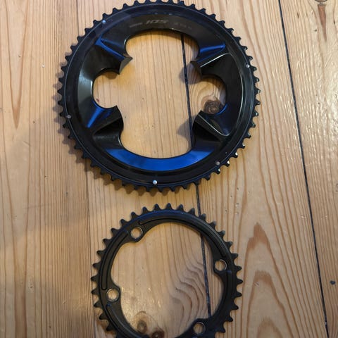 Da jeg ikke får brug for den, sælger jeg en enkelt Shimano 105 11s 52t klinge i fin stand.