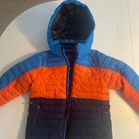 Super smart skijakke fra italienske Brunotti med camouflage mønster i grålige farver med orange lynlås ved lommerne. Snefang, aftagelig hætte og snefang ved ærmerne. Lomme til liftkort.