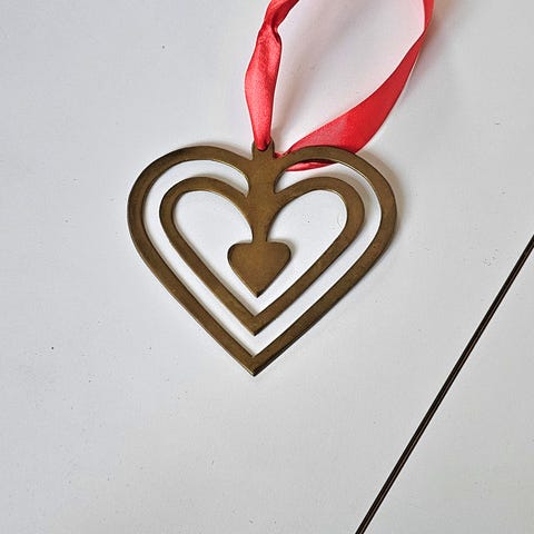 Sødt hjerte -ophæng i metal med små perler og fine ting indeni.