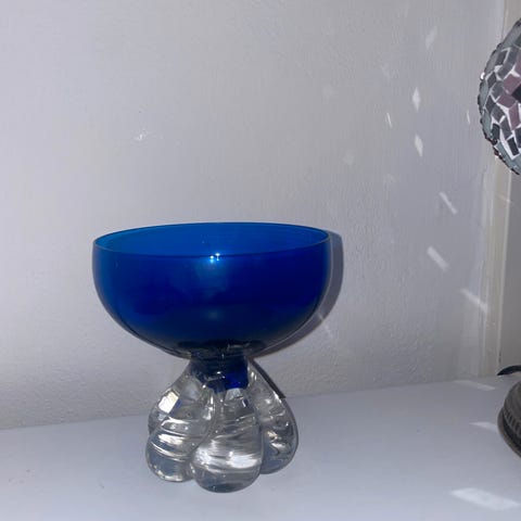 Skålen måler 30cm i længden, 23cm bred og 9cm høj. Designet med et hul i som ‘håndtag’.