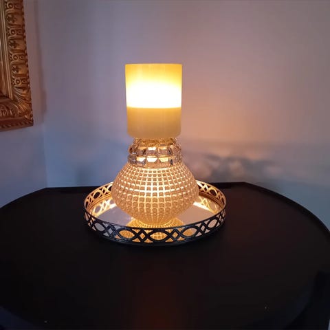 Jeg har brugt mundblæst krystal fra orrefors og slettvoll, så det er lækkert Luksusgenbrug, i denne store smukke glas lysestage.