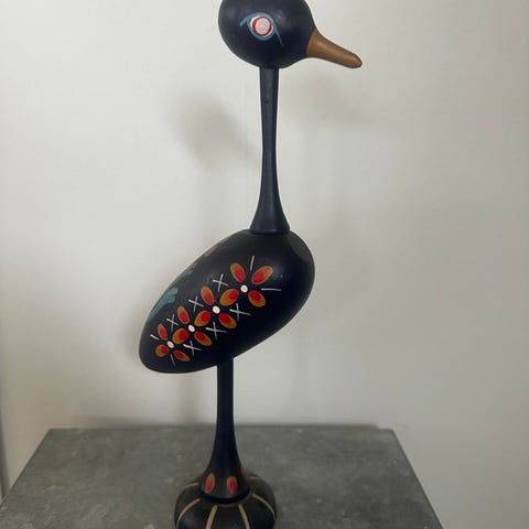 Bemalet træ. Højde 3,5 cm.
