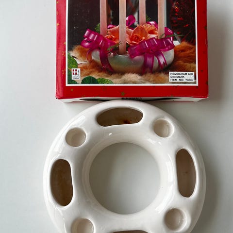 Retro Adventstage, Flot retro Adventstage i hvid. Der skal bruges kronelys. Stagen er krakeleret i glasuren og man kan se den har været brugt men det giver bar charme. Pynt følger ikke med. Er fra start 80'erne